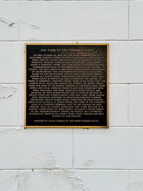 Afterward, I walked to Mass at St. Augustine Church in the Tremé to view the Tomb of the Unknown Slave and light a candle for my ancestors.